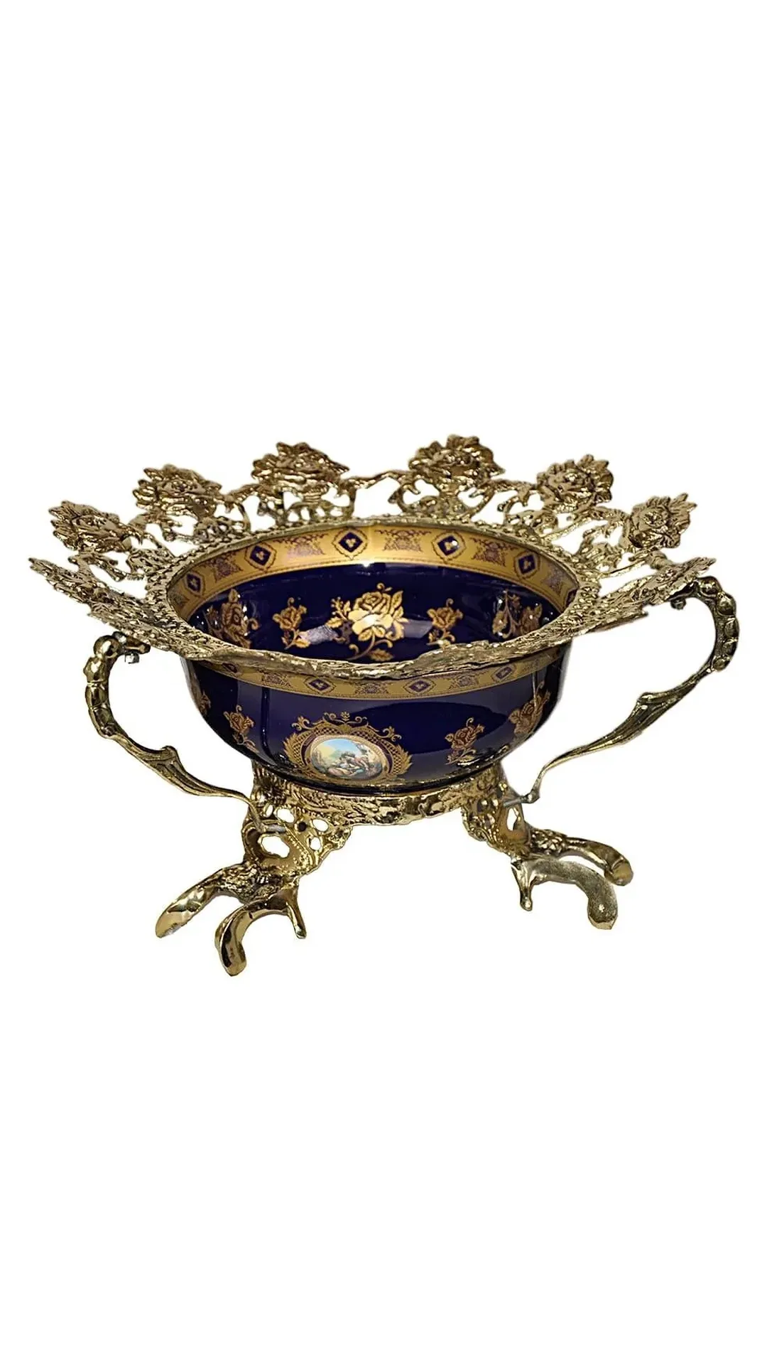 ظروف پزیرایی دو تیکه برنجی باچینی سرمه ای.