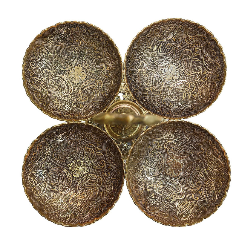 اردوخوری برنزی چهارقسمتی، انتخابی شیک و کاربردی برای پذیراییهای حرفهای و مهمانیهای خاص است. این اردوخوری از برنز مرغوب ساخته شده و دارای **چهار بخش مجزا** میباشد که به شما امکان میدهد انواع مزهها، ترشیها، تنقلات یا آجیل را بهصورت منظم و زیبا سرو کنید. طراحی لوکس و درخشش گرم فلز برنز، آن را به نقطهای جذاب روی میز پذیرایی تبدیل میکند. این محصول علاوه بر کارایی عالی، بهعنوان یک دکوری لوکس نیز ظاهر میز را ارتقا میدهد و مناسب برای خانههایی با دکوراسیون کلاسیک و لاکچری است. گزینهای بینظیر برای پذیرایی آراسته و متفاوت میباشد.