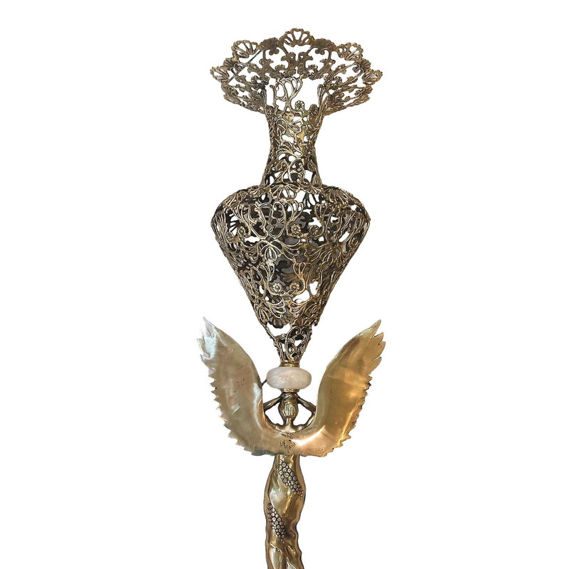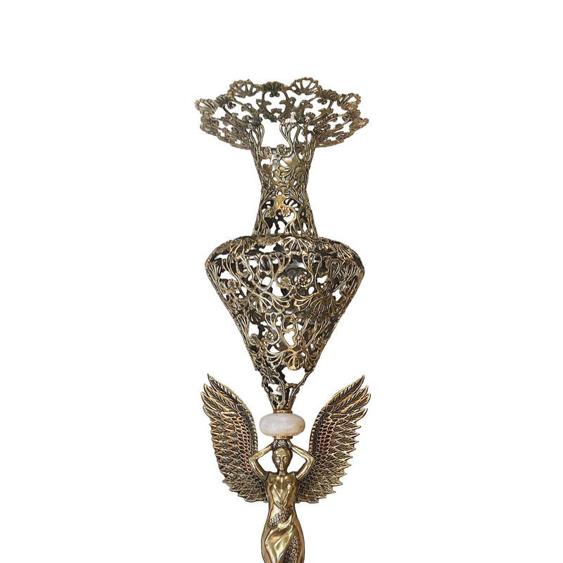 گلدان برنز مدل فرشته، اثری چشمنواز و مجلل است که با طراحی الهامگرفته از هنر کلاسیک، جلوهای سلطنتی به فضای شما میبخشد. این گلدان از برنز مرغوب ساخته شده و پایه آن با طرح زیبای فرشته تزئین شده است که نمادی از لطافت و هماهنگی در هنر دکوراتیو به شمار میرود. درخشش گرم و طبیعی برنز در کنار فرم متعادل و جزئیات ظریف، باعث میشود این گلدان چه با گلهای طبیعی و چه بهصورت دکوری تنها، نقطهای خاص و فاخر در دکور منزل یا محل کارتان باشد. انتخابی بینظیر برای سلیقههای هنری و عاشقان دکوراسیون کلاسیک میباشد.
