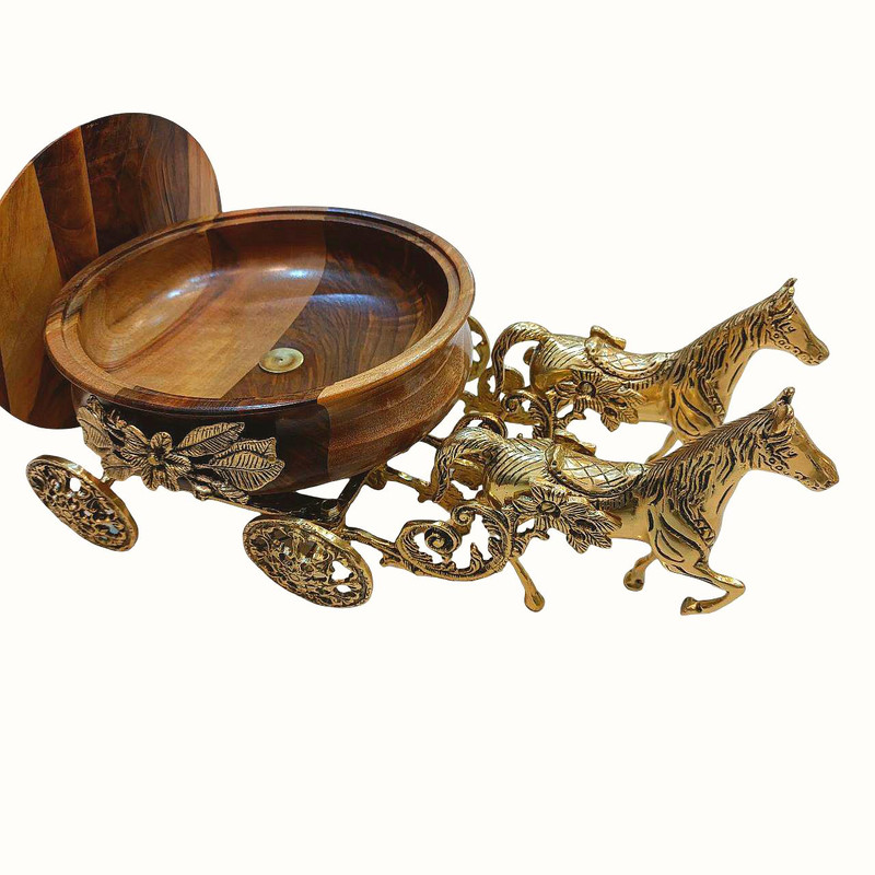 شکلاتخوری لوکس برنز مدل درشکه با ظرف چوبی، ترکیبی بینظیر از اصالت و ظرافت است. این محصول با طراحی منحصربهفرد به شکل درشکه ساخته شده و در قسمت عقب آن ظرفی از جنس چوب مرغوب قرار دارد که جلوهای خاص و متفاوت به این اثر هنری بخشیده است. ترکیب برنز درخشان با چوب طبیعی، هماهنگی چشمگیری ایجاد کرده و آن را به گزینهای ایدهآل برای دکوراسیونهای لوکس و پذیراییهای رسمی تبدیل میکند.