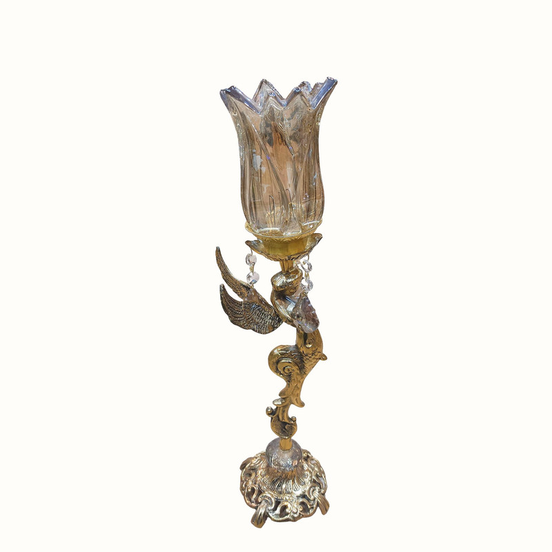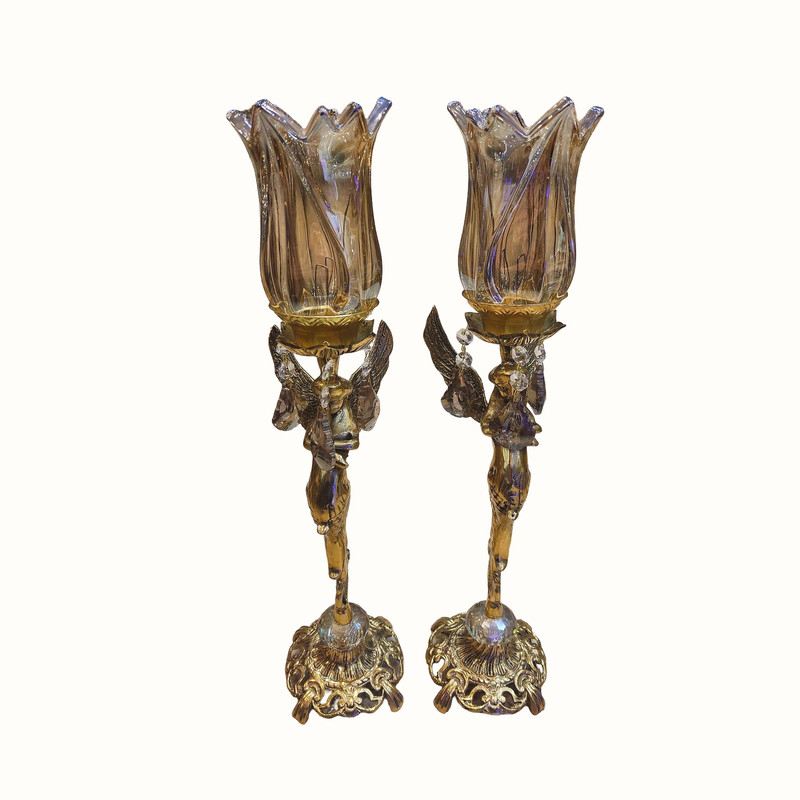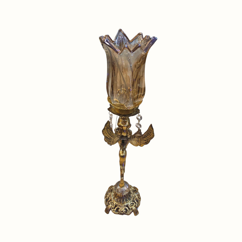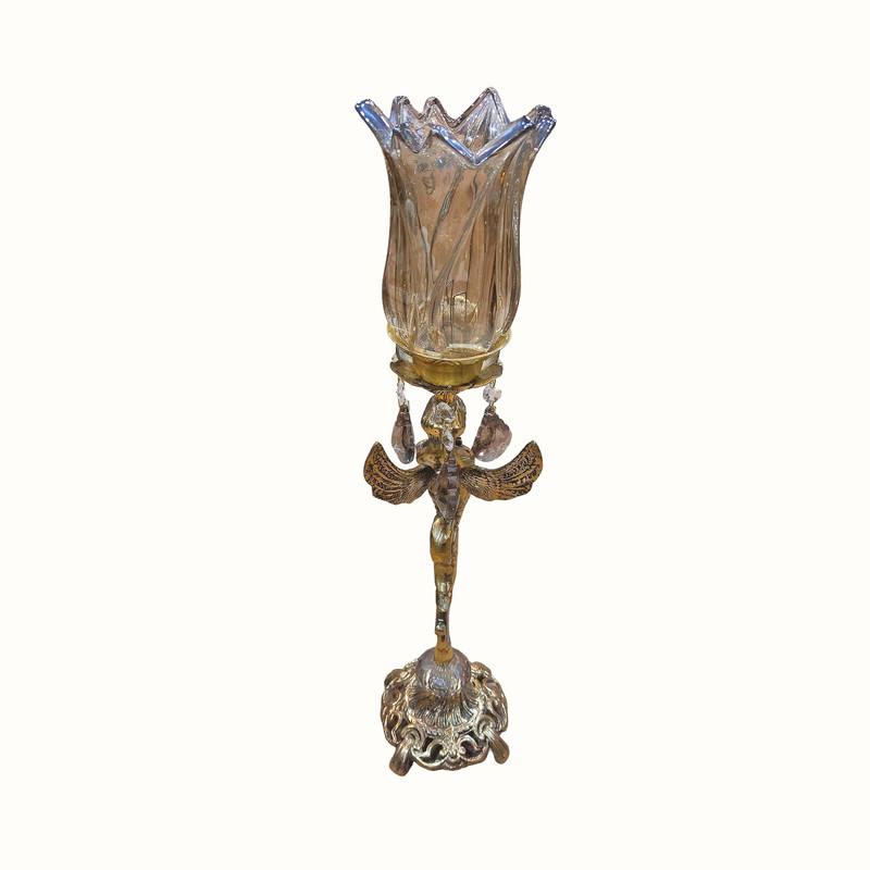 شمعدان برنزی مدل فرشته، دکوریای مجلل و معنوی است که با الهام از طرح فرشته، جلوهای شاعرانه و متفاوت به فضای شما میبخشد. این شمعدان از برنز مرغوب ساخته شده و پایه یا بدنهی آن بهصورت ظریف در قالب فرشته طراحی شده است؛ جزئیات چهره و بالها با دقت کار شده و درخشش گرم فلز برنز، زیبایی آن را دوچندان کرده است. قرار گرفتن شمع روی این طرح هنری، نور و سایهای دلانگیز ایجاد میکند و فضا را صمیمی و آرامشبخش میسازد. شمعدان برنزی مدل فرشته، انتخابی عالی برای دکور میز، کنسول یا شومینه و همچنین هدیهای نمادین و ماندگار برای سلیقههای خاص است.