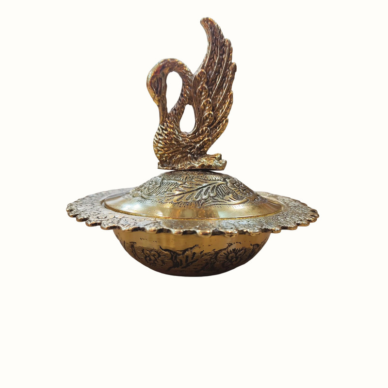 قندان برنزی مدل قو، ظرفی شیک و نمادین است که با الهام از زیبایی و وقار قو طراحی شده و جلوهای خاص به میز چای و پذیرایی شما میبخشد. این قندان از برنز مرغوب ساخته شده و روی بدنه یا درِ آن طرح ظریف قو کار شده است که حس آرامش، اصالت و شکوه را همزمان القا میکند. درخشش گرم و طلایی برنز در کنار فرم متناسب و طراحی هنرمندانه، آن را به گزینهای مناسب برای استفاده روزمره و همچنین دکور روی سینی، کنسول یا ویترین تبدیل کرده است. قندان برنزی مدل قو، انتخابی ایدهآل برای سرو قند و شکر در پذیراییهای شیک و هدیهای ماندگار برای سلیقههای خاص و کلاسیک است.
