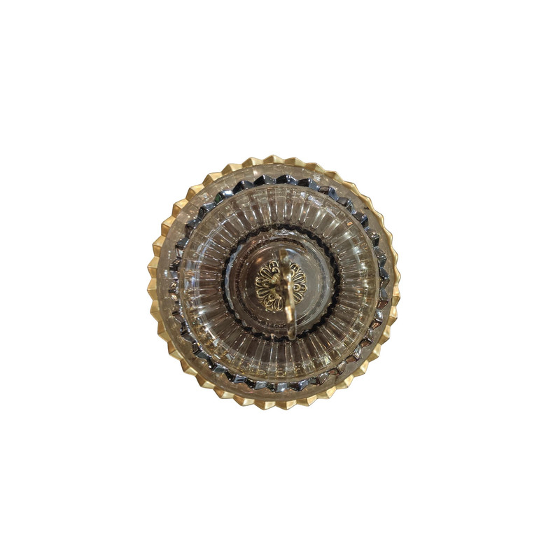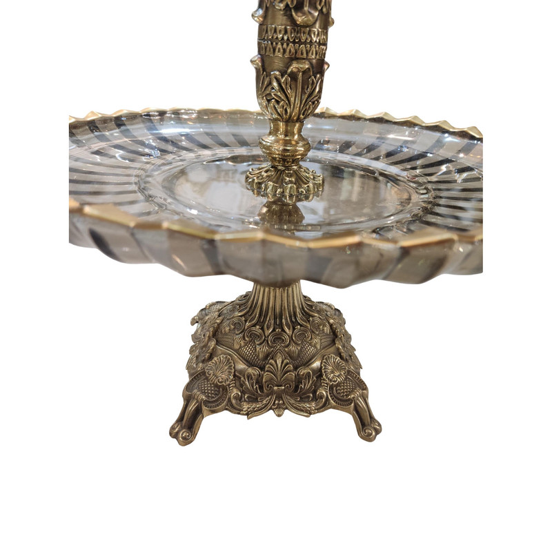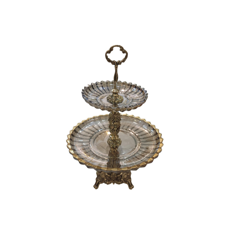 شیرینیخوری دو طبقه برنز و کریستال، ترکیبی چشمنواز از ظرافت و اصالت است. این محصول با پایهای از برنز مرغوب و دو طبقهی زیبا از کریستال شفاف ساخته شده که درخشش نور را به شکلی خیرهکننده بازتاب میدهد. طراحی کلاسیک و هماهنگی فلز و کریستال، جلوهای لوکس به میز پذیرایی شما میبخشد. این شیرینیخوری برای سرو شیرینی، میوه یا دسر در مهمانیها بسیار مناسب است و در عین حال میتواند بهعنوان یک دکوری ظریف و ماندگار نیز مورد استفاده قرار گیرد. انتخابی عالی برای پذیراییهای خاص و هدیهای ارزشمند برای سلیقههای ظریف میباشد.
