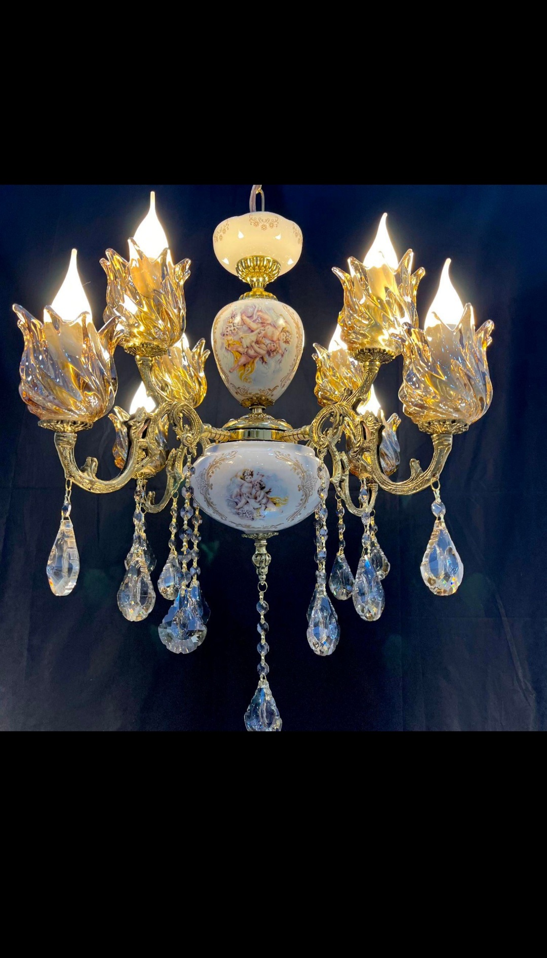 لوستر سرامیکی ترکیب برنز ۴ شاخه ۸دشعله