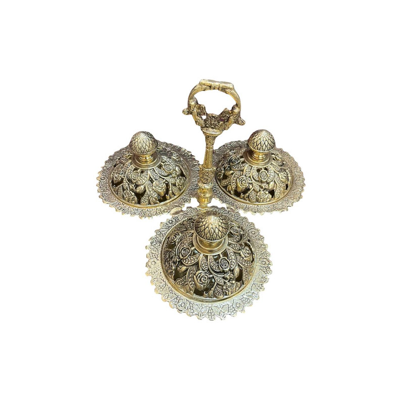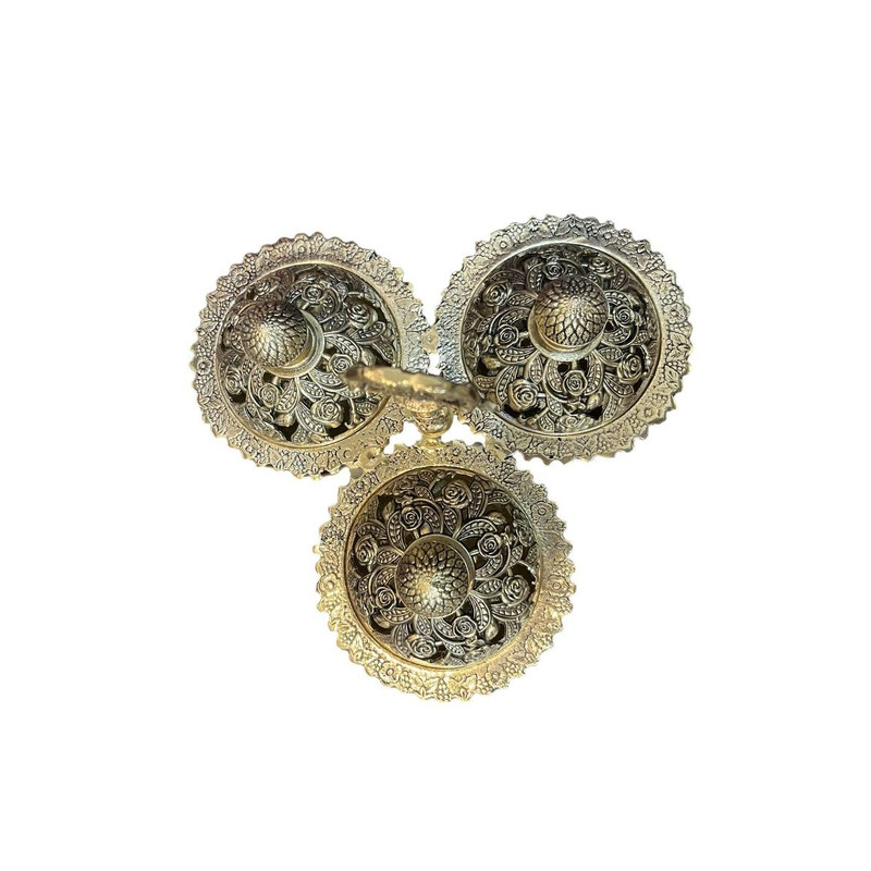 شکلاتخوری برنز سهقسمتی، ترکیبی از زیبایی و کاربرد است که برای پذیراییهای خاص و دکوراسیونهای لوکس طراحی شده است. این شکلاتخوری از برنز مرغوب ساخته شده و دارای سه بخش مجزا برای قرار دادن شکلات، خشکبار یا شیرینیهای مختلف است. طراحی هنرمندانه و درخشش طبیعی برنز، جلوهای مجلل و چشمنواز به میز پذیرایی شما میدهد. علاوه بر کارایی بالا، این محصول بهدلیل فرم متقارن و جزئیات ظریفش میتواند بهعنوان یک دکوری شیک نیز استفاده شود و گزینهای عالی برای هدیه دادن به علاقهمندان سبک کلاسیک باشد.