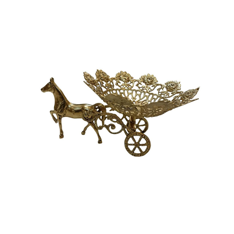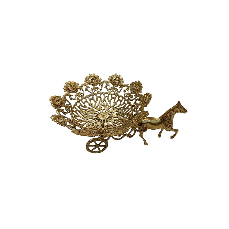 میوهخوری برنز مدل درشکه با طرح گل رز، اثری لوکس و چشمنواز است که ترکیبی از هنر و ظرافت را در طراحی خود به نمایش میگذارد. این میوهخوری به شکل درشکه طراحی شده و سبد آن با گلهای رز زیبا تزئین شده است، که جلوهای رمانتیک و خاص به میز پذیرایی شما میبخشد. استفاده از برنز مرغوب در ساخت این محصول، دوام و درخشندگی آن را تضمین کرده و ظاهر آن را برای سالها ماندگار میسازد.