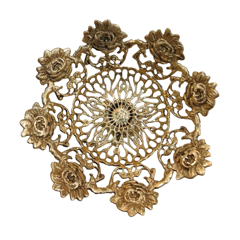 شکلاتخوری برنز مدل گل رز، ترکیبی از ظرافت و شکوه است که جلوهای لوکس به میز پذیرایی شما میبخشد. این شکلاتخوری از برنز مرغوب ساخته شده و بدنهی آن با نقش گلهای رز برجسته و زیبا تزئین شده است که حس لطافت و اصالت را در کنار هم القا میکند. درخشش گرم برنز و طراحی گلدار، باعث میشود این اثر نهتنها برای سرو شکلات و شیرینی مناسب باشد، بلکه بهعنوان یک دکوری هنری نیز جلوهای خاص به دکوراسیون منزل یا محل کار شما بدهد. انتخابی ماندگار برای کسانی که به جزئیات لوکس و طراحی کلاسیک اهمیت میدهند.