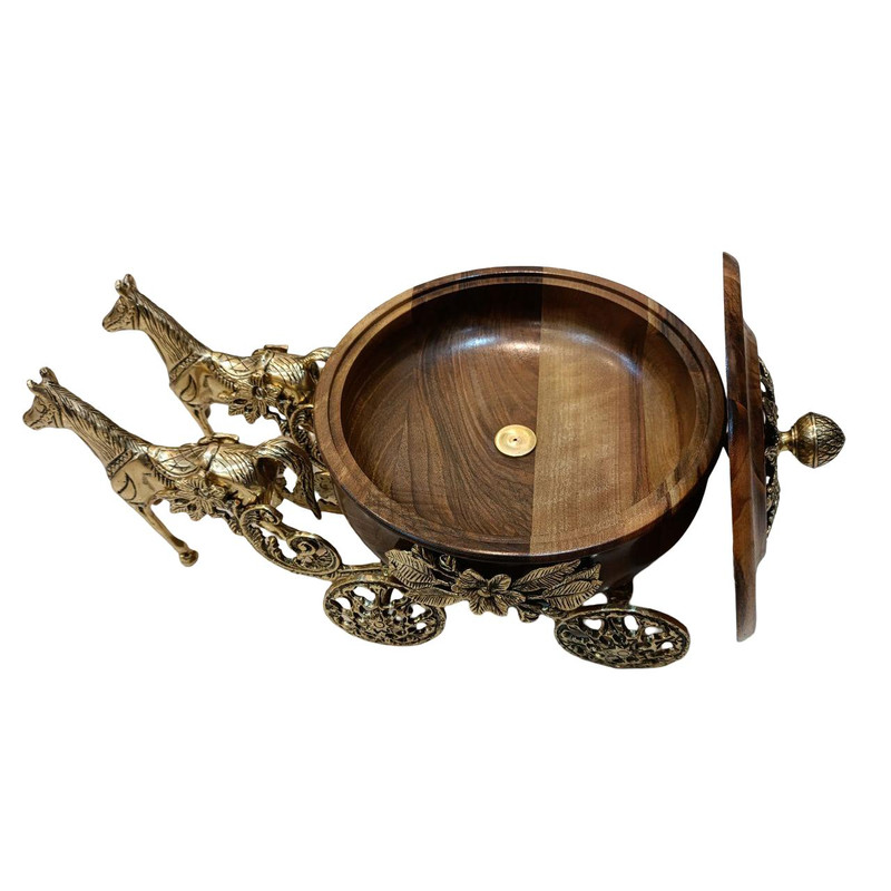 شکلاتخوری لوکس برنز مدل درشکه با ظرف چوبی، ترکیبی بینظیر از اصالت و ظرافت است. این محصول با طراحی منحصربهفرد به شکل درشکه ساخته شده و در قسمت عقب آن ظرفی از جنس چوب مرغوب قرار دارد که جلوهای خاص و متفاوت به این اثر هنری بخشیده است. ترکیب برنز درخشان با چوب طبیعی، هماهنگی چشمگیری ایجاد کرده و آن را به گزینهای ایدهآل برای دکوراسیونهای لوکس و پذیراییهای رسمی تبدیل میکند.