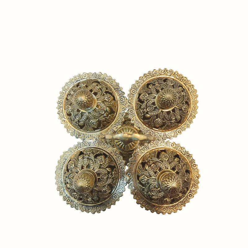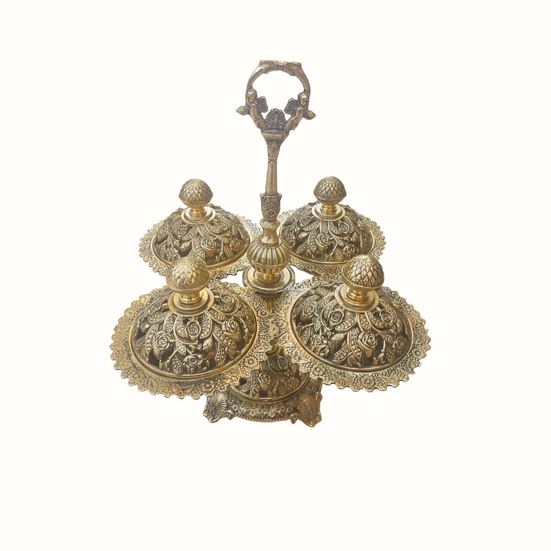 این شکلاتخوری برنز، ترکیبی منحصر بهفرد از کارایی و زیبایی است که برای پذیراییهای خاص طراحی شده است. بدنهی این محصول از برنز مرغوب ساخته شده و بهگونهای طراحی شده که دارای چهار محفظه مجزا برای شکلات، شیرینی، خشکبار یا انواع تنقلات میباشد. تفکیک این بخشها به شما امکان میدهد تا تنوع خوراکیها را بهصورت همزمان و منظم ارائه دهید. درخشش طبیعی برنز در کنار طراحی هنرمندانه و منظم، جلوهای لوکس به میز پذیرایی شما میبخشد. این شکلاتخوری نهتنها برای سرو کاربردی است، بلکه بهعنوان یک دکوری شیک نیز در محیط منزل یا محل کارتان تاثیرگذار خواهد بود. انتخابی ایدهآل برای هدیه دادن یا بهعنوان قسمتی از سرویس پذیرایی لوکس.